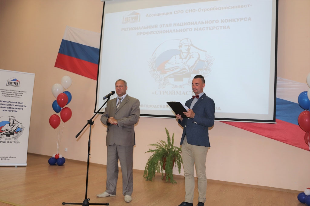 На торжественной церемонии открытия регионального этапа Национального конкурса с приветственным словом выступили: Елисеев Сергей Евгеньевич – директор департамента национального реестра специалистов и профессионального образования Ассоциации «Национальное объединение строителей»; заместитель министра труда и социальной защиты населения Новгородской области Иванов Владимир Геннадьевич; заместитель министра строительства, архитектуры и территориального развития Новгородской области Желтова Ирина Львовна; председатель Новгородской областной организации Профессионального союза работников строительства и промышленности строительных материалов АгафоновАлексей Иванович.