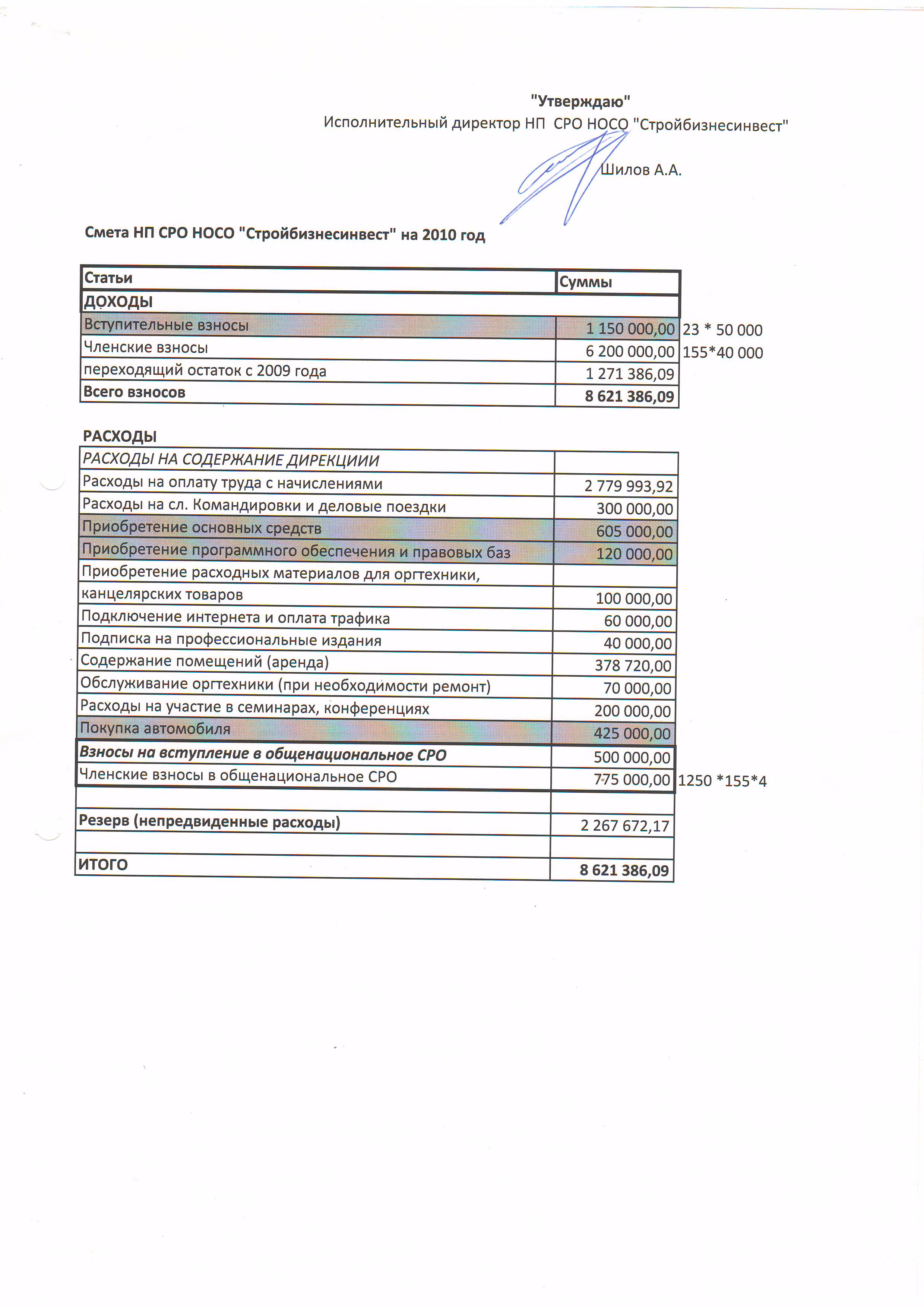 Смета на 2010 год