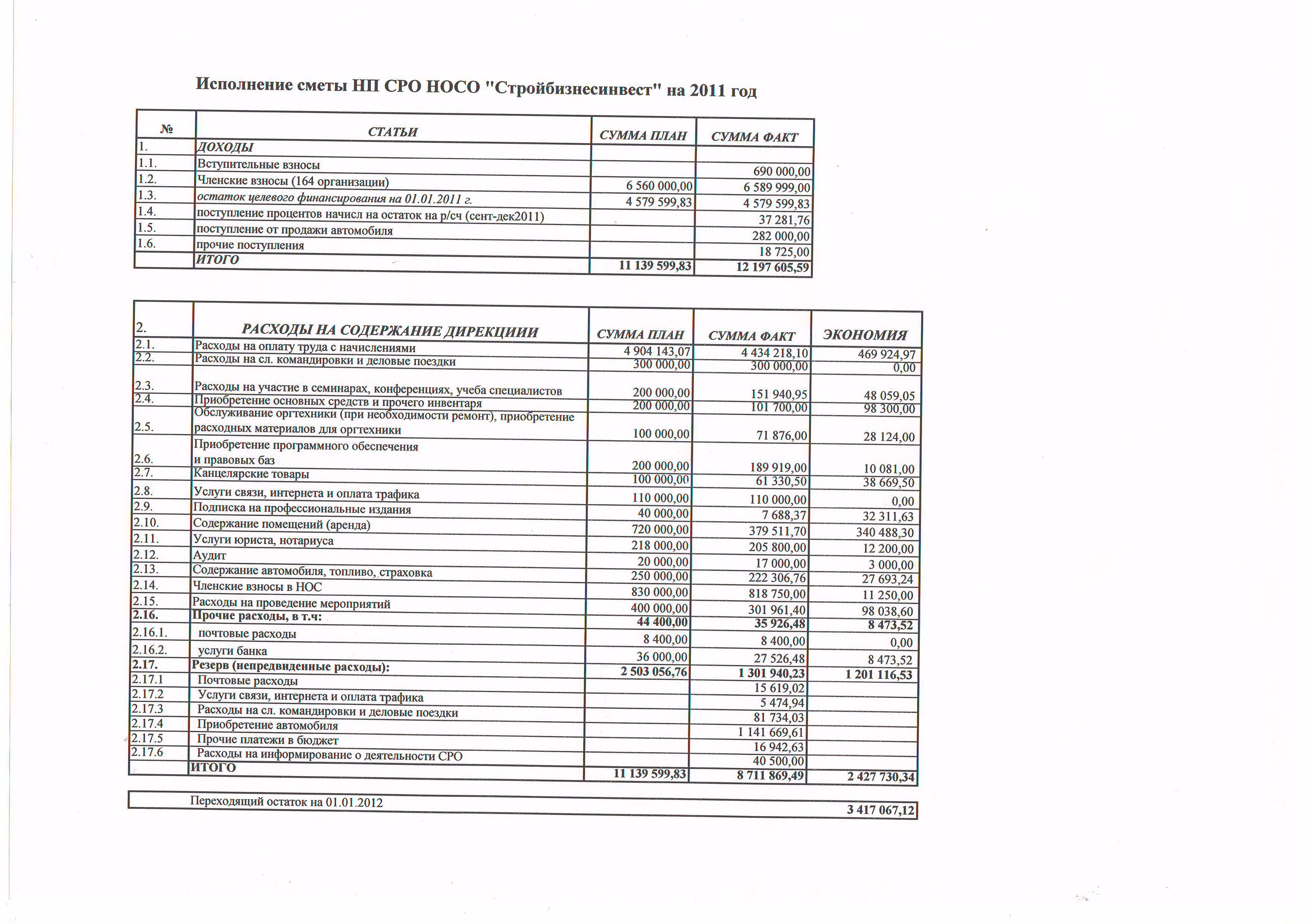 Исполнение сметы 2011 года
